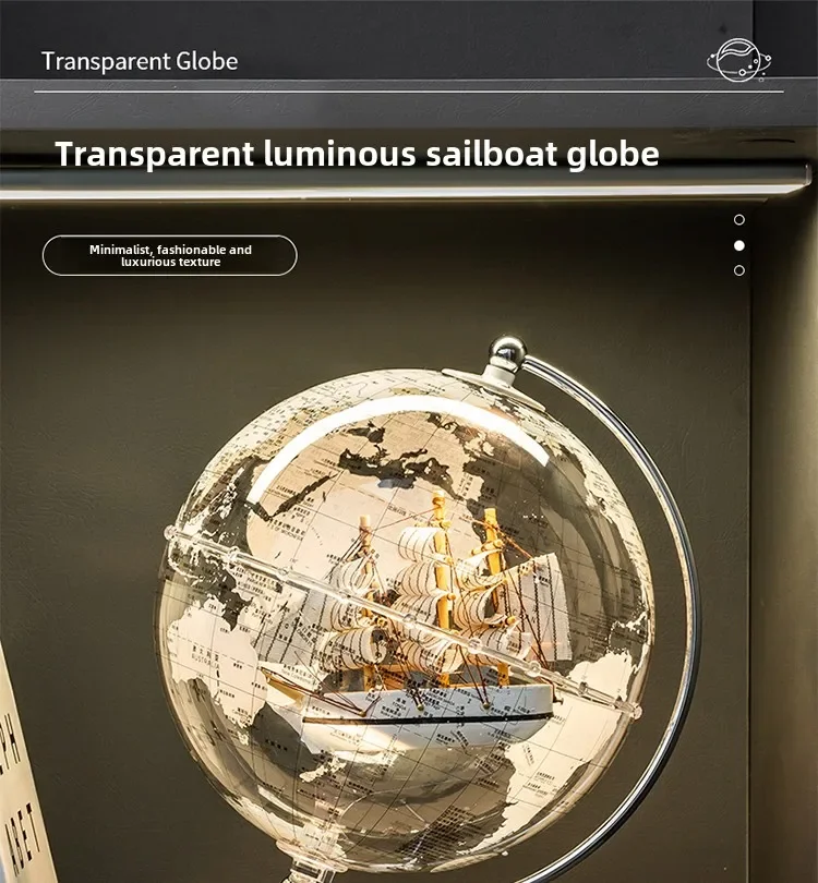 • Material: Transparent acrylic/glass globe with detailed wooden or metallic ship model.